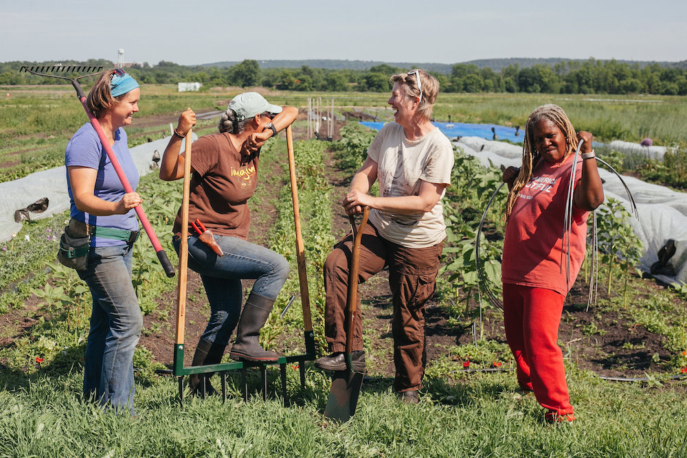 We formed the farm with a social justice mission, so one of the things that we do — and that we did not do as successfully this past season but have in seasons past — is we have open farm work days, like a community work day on the farm. Usually the last Saturday of the month is when we've typically done it. It's a way for people to come out of the city, to come from around the suburbs where we live, and work with us on the farm and be in a space where ... Jane and I are married; we are queer people. We have queer people, we have straight people, we have older people and younger, we are intergenerational. Lorrie and Karen are both black, so we have people of color and white people working together, and we're all women. So all of these people who are traditionally under-represented in agriculture can feel welcome and comfortable working with us on the farm. It's a gift that we can give, and people are super appreciative of it, and it's also a gift to have people come to the farm and work with us. The community we had in the city is something that we miss, so the fact that we are close enough to the city that people can come up, and that people from our area who are wanting a farm experience in a welcoming environment can come to the farm and work with us and get their hands in the soil and be out in nature and see the bugs and the frogs and hear the birds.